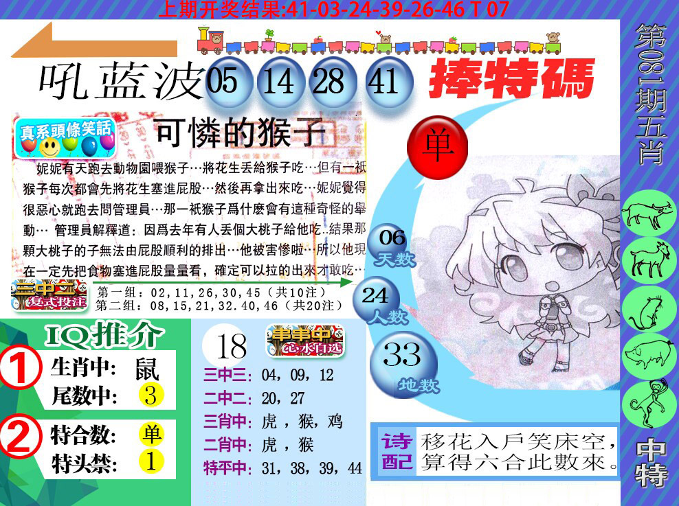 078期:必中④肖:狗猴兔猪蛇-稳准狠
