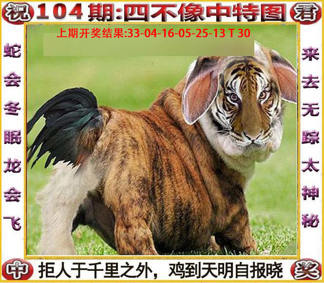 | 104期:必中④肖:兔鸡虎蛇龙-稳准狠 |