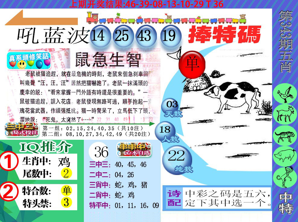 必中九肖:兔虎龙鸡鼠猪马狗牛 必中七肖:兔虎龙鸡鼠猪马 必中五肖:兔虎龙鸡鼠 必中三肖:兔虎龙 必中一肖:兔 双波中特:蓝波+绿波 平特一肖:猪 独平一码:18 平特一尾:4尾 精选10码:39 16 38 45 12 43 24 32 26 05 |